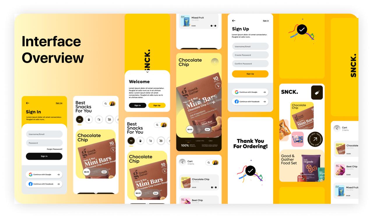 The design brings SNCK’s bold personality to life — colorful, energetic, and built to make the user want to order something the moment midnight cravings hit.